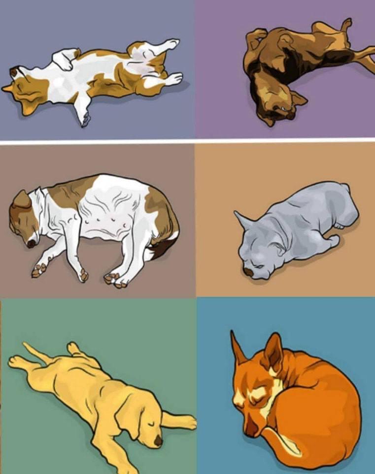 Di seguito vi illustriamo quali sono le più comuni posizioni del sonno di un cane: