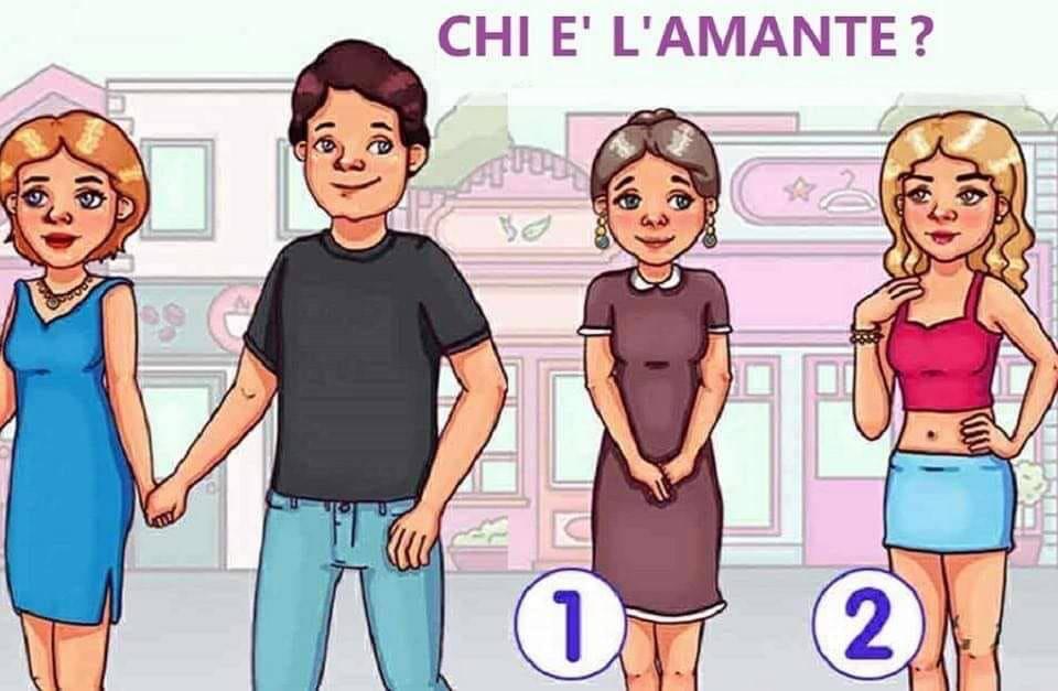 La risposta corretta è la numero 1. Da cosa lo deduciamo? La collana della moglie e gli orecchini della donna numero 1, appartengono alla stessa serie. L’uomo in questione non è solo infedele, ma è anche avaro!! Lo avevi capito?