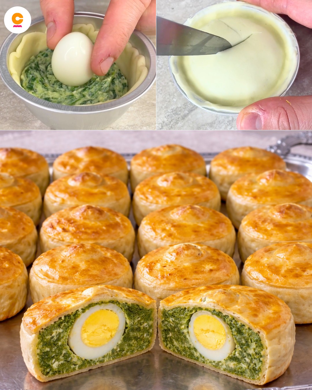 Riempili con la farcia, al centro metti l’uovo di quaglia, richiudi con un altro disco di pasta e spennella la superficie con del tuorlo sbattuto.