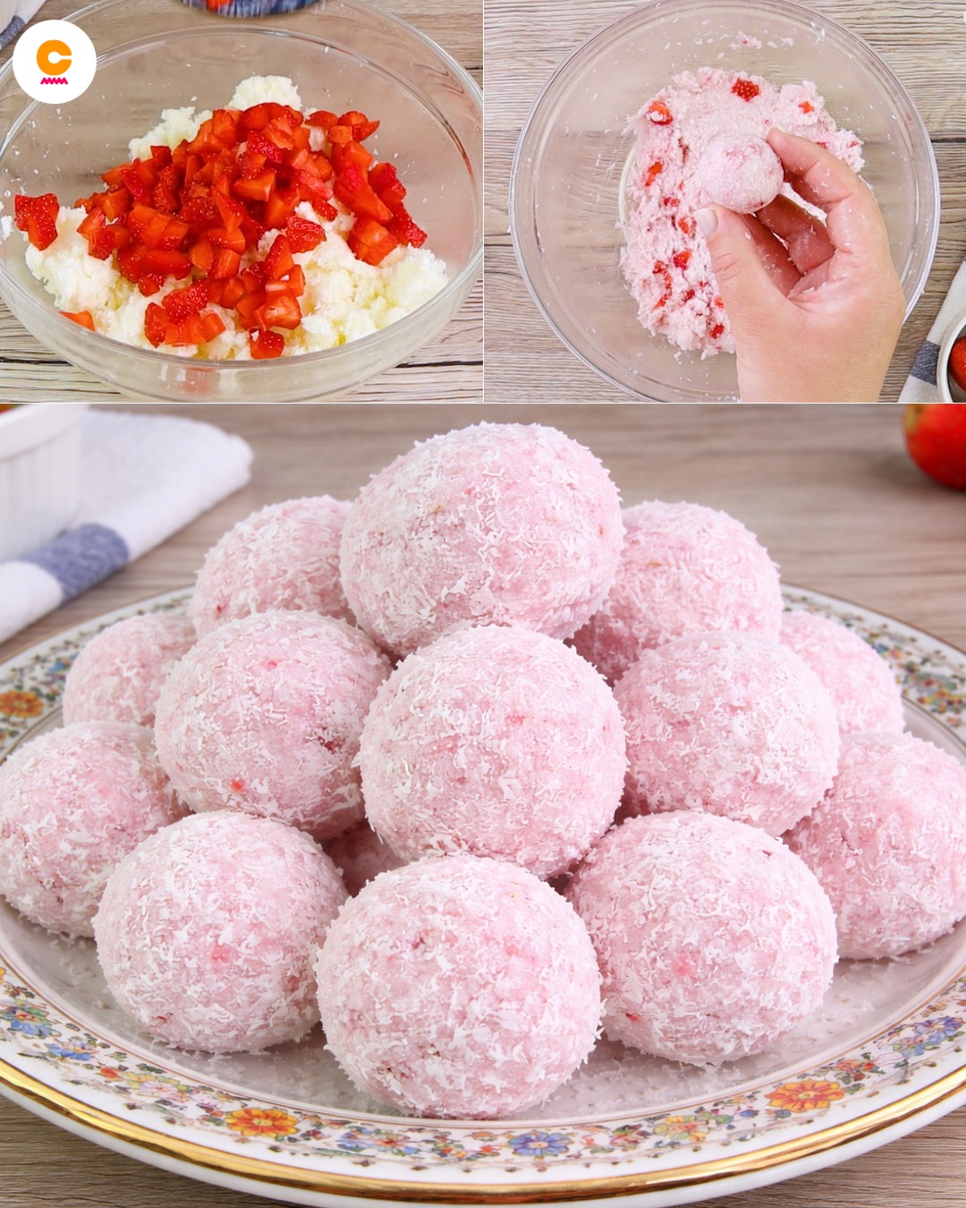 Per realizzarli, basterà mescolare insieme mascarpone, zucchero semolato, farina di cocco, zucchero vanigliato e fragole a pezzetti. Una volta formate le palline, saranno passate nella farina di cocco e lasciate riposare in frigo per 1 ora, per farle rassodare.