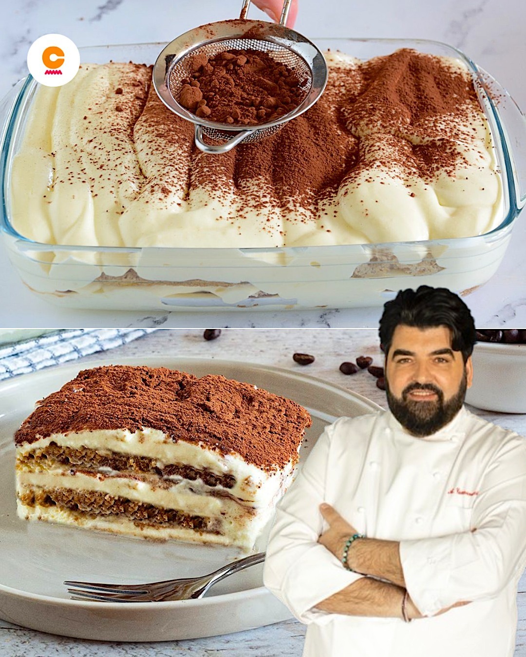 Il tiramisù di Cannavacciulo è la rivisitazione del grande classico al cucchiaio a firma dello chef stellato più amato di sempre. Tratto dal sito di ricette di Antonino Cannavacciuolo, questo squisito dessert viene preparato come da scuola con i savoiardi, imbevuti nel caffè espresso e alternati poi a strati di crema al mascarpone, solo che, in questo caso, la bagna viene aromatizzata con un goccino di liquore, mentre i biscotti vengono confezionati con farina di riso: per un risultato adatto anche a ospiti celiaci o intolleranti al glutine.