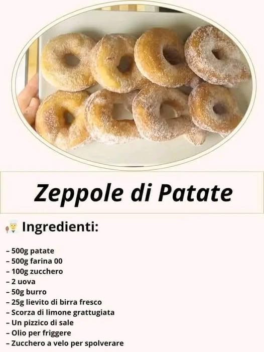 Ci sono profumi che restano impressi per sempre nella memoria: il burro che si scioglie nelle patate calde, lo zucchero che si caramella appena tocca l’olio bollente, la buccia di limone che profuma la cucina… Ecco, questo è il ricordo che mi accompagna ogni volta che preparo le Zeppole di Patate Sofficissime, la ricetta originale della mia nonna, quella autentica, semplice e genuina, che da generazioni fa felici grandi e piccini.